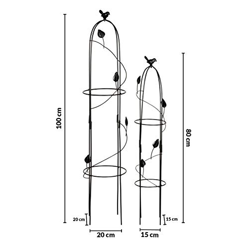 Das Set besteht ganz zwei eleganten Rankhilfen. Durch die Kugel und Verziehrung auf der Spitze der Obelsiken wirkt die Kletterhilfe noch schöner und wird zum absoluten Hingucker. Die Rosenhilfe eignet sich super sowohl für Gartenbeete wie aka für größere Topfpflanzen. Der hochwertige Stahlobelisk ist rostgeschützt durch eine Pulverbeschichtung. Sie können zwischen zwei verschiedenen Arten Entscheiden. Entweder die schwarz der die Edelrostoptik Pulverbeschichtung.