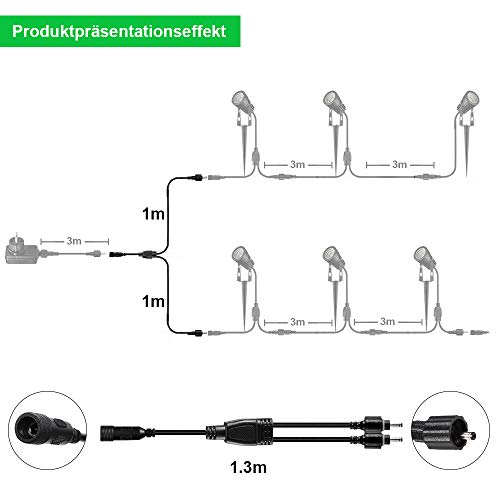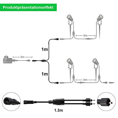 Mithilfe diesem Y-förmigen Verlängerungskabel können Sie die Kombination mehrerer Gartenleuchten novellieren. Genießen Sie den Spaß, Ihren Errichtung zu illuminieren.
