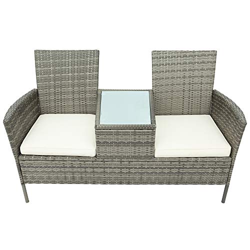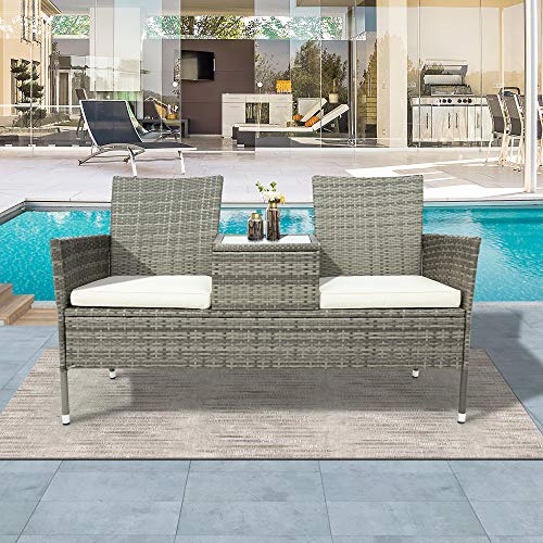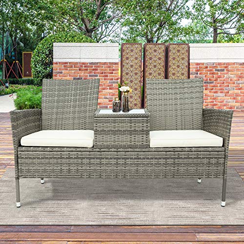 2-Sitzer Gartensessel Loveseat Pausenlos Kunststoff Polyrattan Gartenlounge Balkonmöbel mit Tisch, Sitzkissen waschbar stattdessen Balkon Terrasse Garten