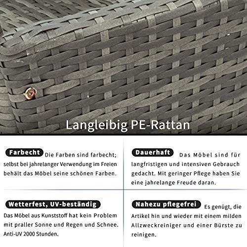 POLYRATTAN-ROBUST, WETTERFEST, HOHE UV-BESTÄNDIG UND PFLEGELEICHT. Das Geflecht lässt sich kommod mit einem feuchten Tuch und mildem Spülmittel sauber halten.