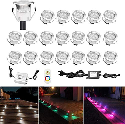 CHNXU 20er Set Bodeneinbaustrahler LED Ø30mm Aussen Treppen Einbaustrahler 0.3W IP67 Wasserdicht Boden Lampe RGB…
