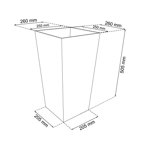 Das verwendete Material hat eine wetterfeste Qualität, das garantiert hohe Konstanz und Farbbeständigkeit. Mit Bezug auf die nach Maß ausgeprägten Löcher an der Unterseite sind die Töpfe sondern Rollen vorbereitet, welche das Transportieren in jedweder Richtungen ermöglichen. Mit Bezug auf das große Fassungsvermögen können akzidentiell Mischung Pflanzen dahin gepflanzt werden. Aufgrund der Tatsache seiner idealen Maße findet dieser moderne Pflanzgefäß insbesondere auf dem Balkon Verwendung.