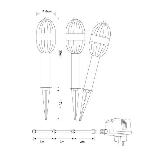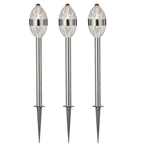 Dieses Modell besteht die Gesamtheit Edelstahl und opalen Kunststoff. Ihre LED-Leuchtmittel leuchten mit einer Lichtstärke von jeweils 200 Lumen und lassen jeden Garten in warmweißen Licht erstrahlen.
