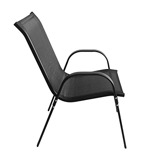 Diese 3-teilige Garnitur besteht jedweder einem schwarzen Gartentisch (79x79cm) und zwei stapelbaren schwarzen Stühlen.