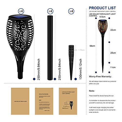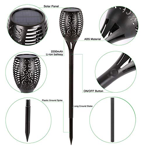 FLAMES FACKELLEUCHTEN: Dieses Solar Flame Fackellicht ist eine sichere Alternative zu den echten „Flammen“. Bieten Sie eine perfekte Lagerfeueratmosphäre für Ihren Garten, Garten, Party, Grill und Camping. Mit zwei Verlängerungsrohren beträgt die tatsächliche Höhe 24.8 Zoll.