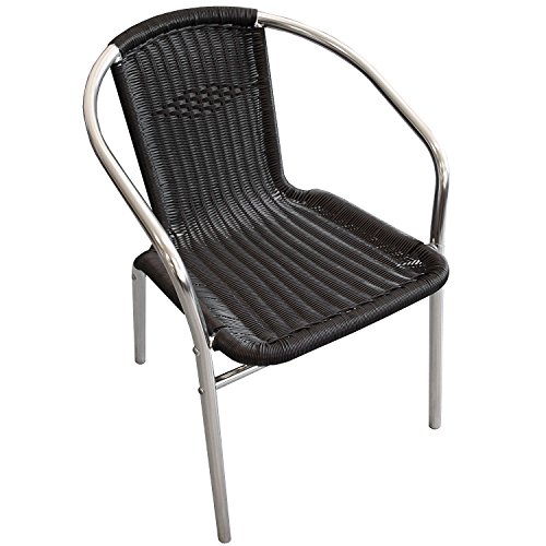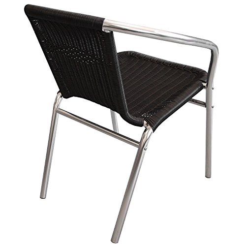 Dieses praktische Bistro-Set, bestehend jeder einem Aluminiumtisch per Poly-Rattan Leichtmetall-Stapelstühlen, ist solide verarbeitet.