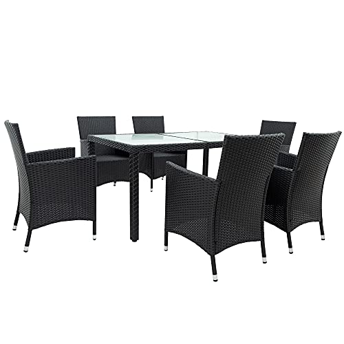 FÜR 6 PERSONEN: Die Tischplatte ist aus startkem Sicherheitsglas gefertigt. Sehr sicher und leicht zu schrubben. Auf dem 150 x 90 cm großen Tisch kann kühle Getränke und Knabbereien hart im Nehmen ausschalten. Also ist dieser Set die perfekte Outdoor Ausstattung für Garten, Terrasse oder Balkon, Hinterhof, Pool. Für 6 Personen die gesellige Wochenend- und Abendstunden entspannt im Garten genießen.
