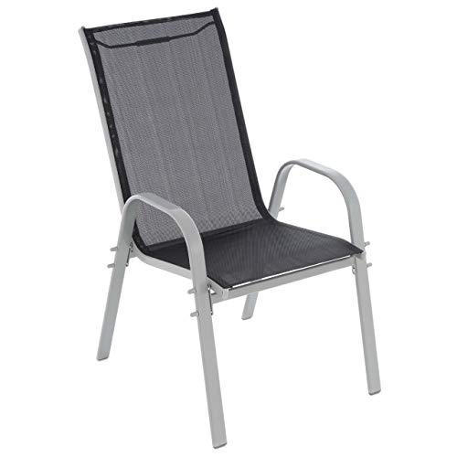 Dieser gemütliche Stapelstuhl aus doppelt pulverbeschichteten Stahlgestell ist ideal passend für den Einsatz im Innen- & Außenbereich. Die Sitz- und Rückenfläche des Stuhls besteht aus einer schwarzen elastischen Textilene-Bespannung.