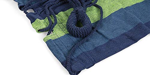 909 OUTDOOR Hängematte für Garten und Camping Blau Grün 200 x 100 cm, aus Baumwolle mit 2 Karabinern, Nylonschnur und…