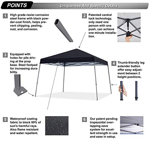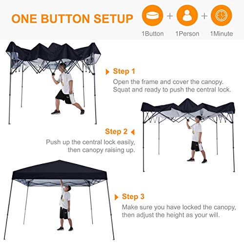 ABCCANOPY 3.6×3.6M Pop Up Pavillon Tragbare Instant Shelter Outdoor Canopies Bonus Rolltasche,Schwarz