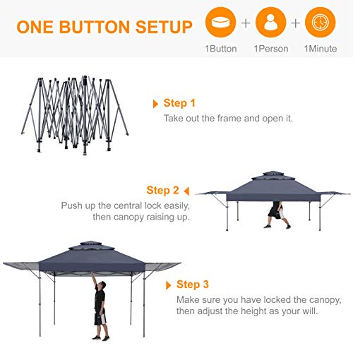 Extra Shade Area: ABCCANOPY 3x3m Instant-Baldachin mit zwei Halbmarkisen, die 12 bis 18 Personen 9 Quadratmeter Schatten bieten und für zusätzlichen Schatten- oder Regenschutz nach oben oder unten aufgestellt werden können.
