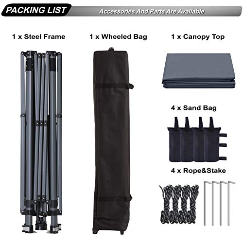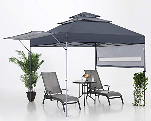 ABCCANOPY 3x3M Pop Up Gartenpavillon 3-Tier Instant Canopy mit verstellbaren Doppelhalbmarkisen, Dunkelgrau