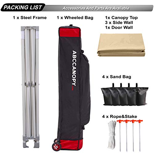 WAS IST INBEGRIFFEN – Commecial 3×3 m Pop-up-Baldachinrahmen, 3×3 Pavillon Dach, 3 abnehmbare Seitenwände, 1 Türwand, 1 Rolltasche, 4 Gewichtstaschen, 4 Pfahl und Seile robuster und langlebiger. Zubehör und Ersatzteile sind lebenslang erhältlich.