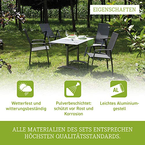 ✅ WETTERFEST & ROSTFREI Das pulverbeschichtetem Gestell die Gesamtheit Aluminium sowie die flache und robuste Tischplatte „Smartline“ sind wetterfest und rostfrei und sehen alias nach vielen Freiluft-Stunden noch schön die Gesamtheit. So eignet sich der Tisch alias als klappbarer Balkontisch oder Terrassentisch.