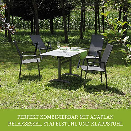 Der Gartentisch Acaplan überzeugt durch seine geradlinige, modernde Form, durch die er zu jedem Einrichtungsstil passt und überall eine gute Figur macht.