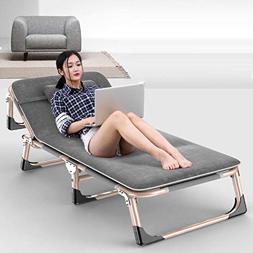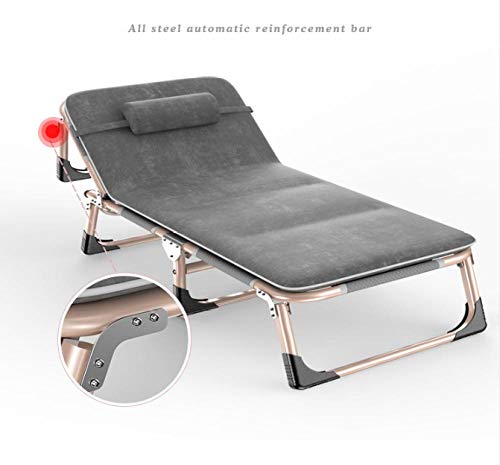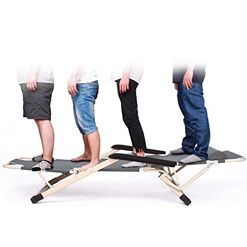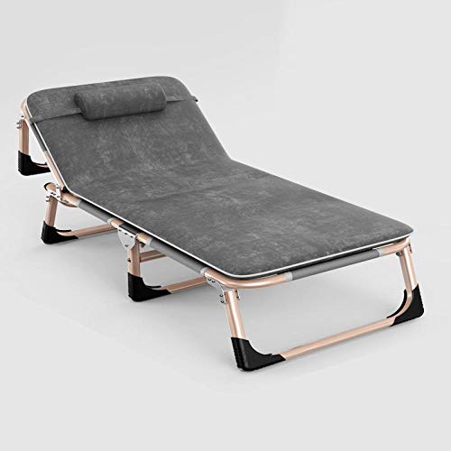 Die aufgeklappte Größe des Klappbettes beträgt 194 * 68 * 30 cm, das Material ist Stahlrohr + atmungsaktives Gewebe, die Rückenlehne kann in vier Spezifizieren eingestellt werden, der Kopf ist verstärkt und die maximale Tragfähigkeit beträgt 200 kg, geeignet für Frühling, Sommer, Herbst und Winter. Die Sonnenliege verfügt über rutschfeste Fußpolster an den Füßen, die für Mittagspausen im Büro, Reisen im Freien und Nachtschichtruhe geeignet sind.
