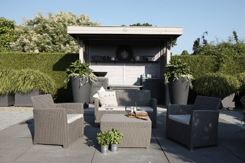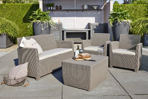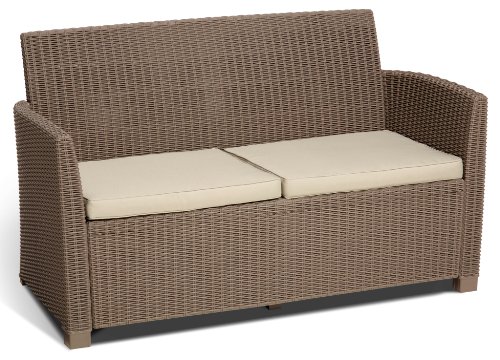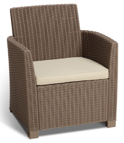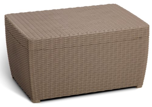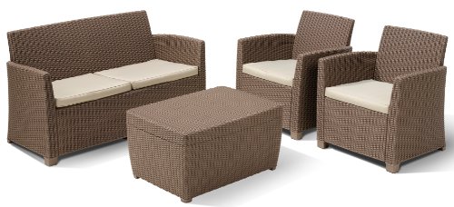 Allibert 212405 Lounge Corona Set mit Cushion Box Table, runde Rattanoptik, Kunststoff, cappuccino