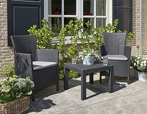 Allibert 219991 Lounge Set Rosario Balcony 2x Sessel und 1x Tisch, Rattanoptik, Kunststoff, braun