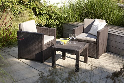 „Allibert by Keter“ Balkonmöbel Set Victoria Balcony Set, braun/taupe, 3tlg., inkl. Sitz- und Rückenkissen, Kunststoff, flache Rattanoptik