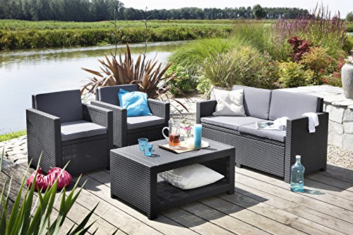 Abmessungen (L/B/H): Sessel: ca. 65 x 63 x 77 cm | Sofa: ca. 129 x 63 x 77 cm | Tisch: ca. 92 x 59 x 43 cm