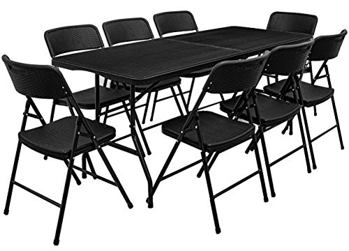 BELASTBAR BIS 150 KG – Sitzgruppe für Garten, Balkon & Camping – ideal für Gäste: Tisch und Stühle stützen bis 150 kg. 8 Klappstühle jeweils ca. 50 x 46 x 83,5 cm groß – Sitz und Lehne aus Kunststoff.