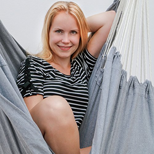 DAS GRÖßTE TUCH, DAS WIR FINDEN KONNTEN – In der Hänge-Schaukel dürfen Sie sich mit Haut und Haaren lang machen. Das Lounger-Tuch aus nachhaltiger Baumwolle ist mit 185 x 130 cm alleinig breit: Im XL Hänge-Sitz können auch grosse Erwachsene die Beine ausstrecken.