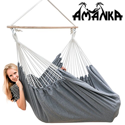 TRAGKRAFT 150 KG: HOCHWERTIG & STABIL – Die Tuch-Fläche misst ca. 185 x 130 cm! Die große Sessel Hänge-Matte ergänzt Garten-Möbel perfekt. Unter die Decke, an Balken, Baum & Gestell: Befestigung ist ganz leicht. 100% Baumwolle, waschbar bei 30°C.