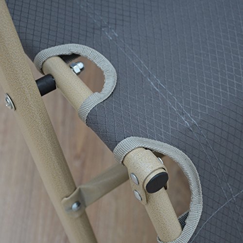Der hochwertige, stilvolle Bezug besitzt beste Eigenschaften zur Verwendung im Außenbereich: wasser- und schmutzabweisend, schnelltrocknend und leicht zu reinigen bei 30°. Das 600D Oxford-Textil-Gewebe ist dank seiner PVC-Beschichtung robust, witterungsbeständig und formstabil. Der beige pulverisierte Stahlrahmen überzeugt durch einen stabilen Stand und eine hochwertige Ablauf, die Ihnen einen langen Dienst leistet.