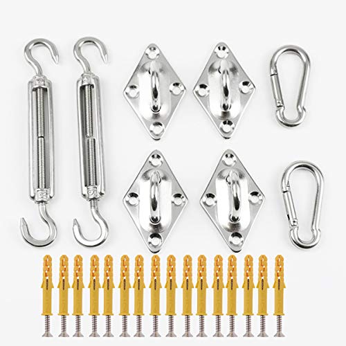 ❤ Einfach zu installieren – Mit den Abspannleinen und Metallbefestigungsringe an den Ecken können das strapazierfähige Sonnensegel leicht und schnell an Bäumen, Hauswänden oder Terrasse Säulen montiert werden.