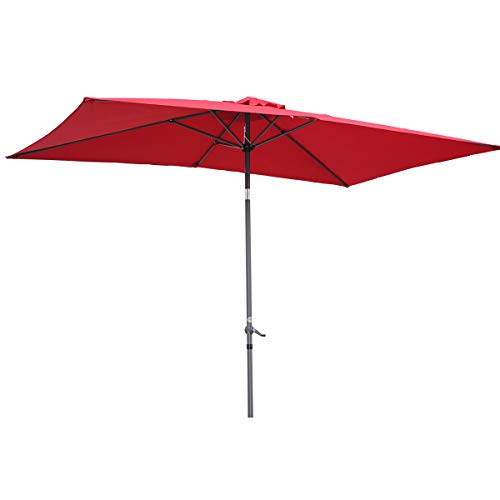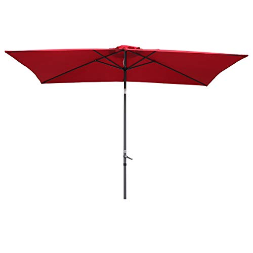 Angel Living 200 x 300 cm Sonnenschirm aus Aluminium mit Kurbel und Neigung für Gartenterrasse,mit UV-Schutz 40+ Rot