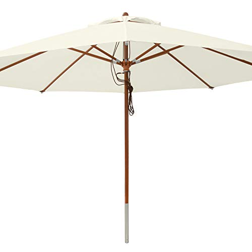Sonnenschirm rund 4 m aus Hartholz und witterungsbeständigem Polyester mit einer Stoffstärke von 235 g/qm