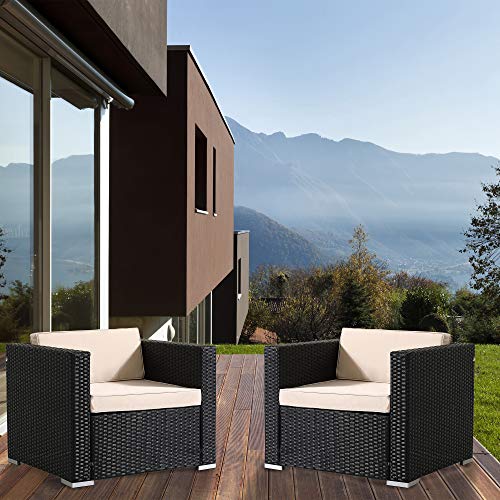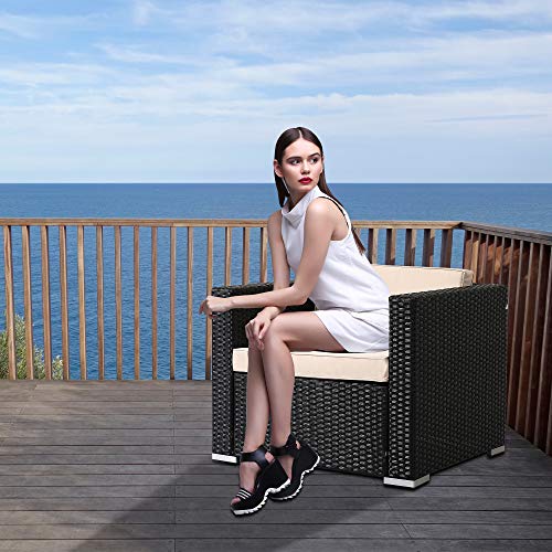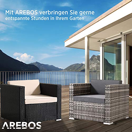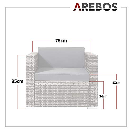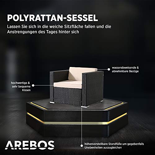 Arebos Poly-Rattan Gartenlounge Sessel | Inkl. Sitz- und Rückenkissen | Schwarz | Wetterbeständiger Garten-Sessel | 85 x 75 x 34 cm