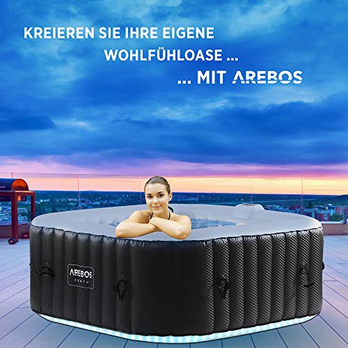 Arebos Whirlpool | 154 x 154 cm | mit LED-Beleuchtung | aufblasbar | quadratisch | In- & Outdoor | 4 Personen | 100 Massagedüsen | mit Heizung | 600 L | Inkl. Abdeckung | Bubble Spa & Wellness Massage