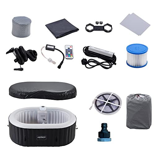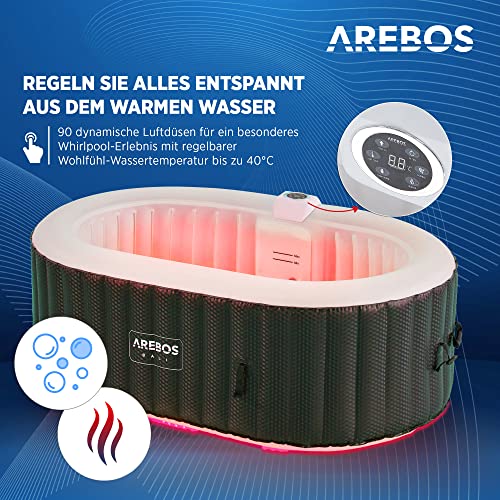 Arebos Whirlpool mit LED Beleuchtung | Aufblasbar | In- & Outdoor | 190×120 cm oval | 2 Personen | 90 Massagedüsen | mit Heizung | 550 Liter | Inkl. Abdeckung | Bubble Spa & Wellness Massage