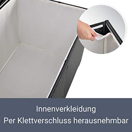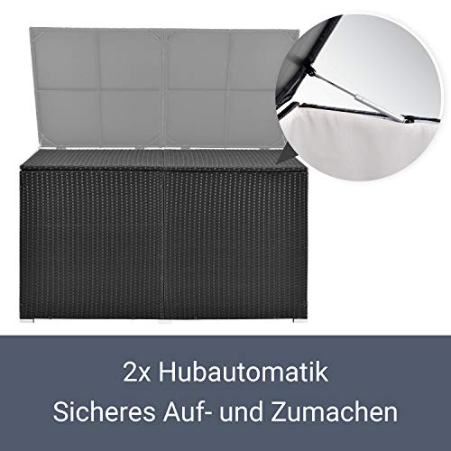 Juskys Polyrattan Auflagenbox Ikaria 950 L mit Deckel mit Hubautomatik & Innenplane — Kissenbox 145 x 82 x 79 cm für…
