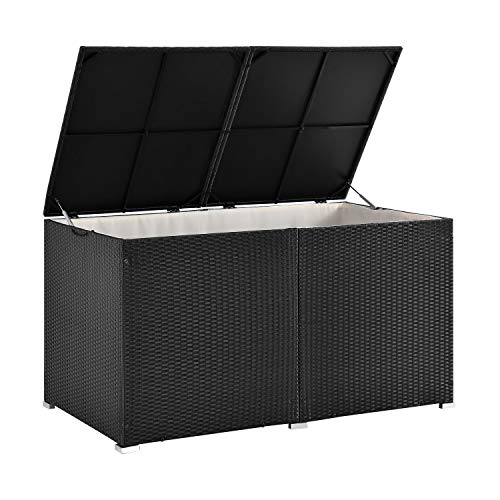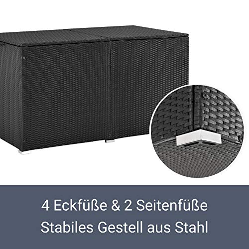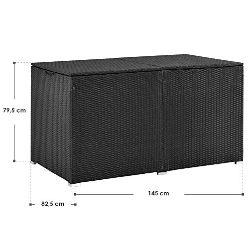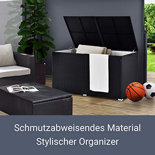 ✅ Stauraum – 145 x 82,5 x 79,5 cm große Polyrattan Auflagenbox schwarz mit ca. 950L Fassungsvermögen statt dessen Garten, Terrasse oder Balkon; perfekt zur Aufbewahrung von Auflagen, Kissen & Gartenzubehör