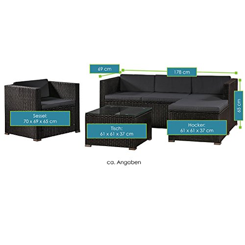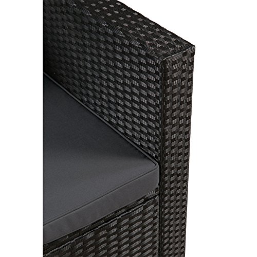 Juskys Polyrattan Lounge Punta Cana L für 4-5 Personen mit 3er Sofa, Sessel, Hocker, Tisch & Kissen, Sitzgruppe für Garten, Terrasse und Balkon, Gartenmöbel Set wetterfest – Schwarz/Grau
