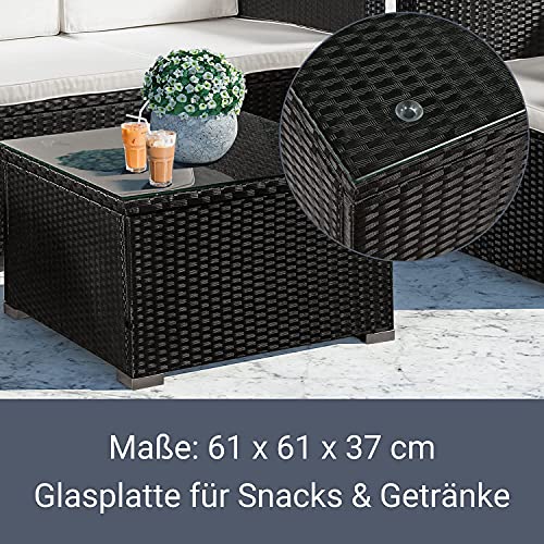 ✅ 4er-Set – Stilvolle Polyrattan Gartenlounge jeglicher 3er Sofa, Sessel, Hocker und quadratischem Beistelltisch in trendiger Rattan-Optik; für gemütliche Stunden in Garten, auf dem Balkon oder der Terrasse