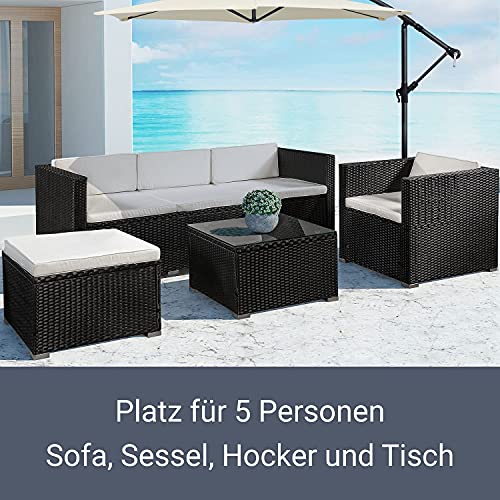 Juskys Polyrattan Lounge Punta Cana L wetterfest mit Sofa, Sessel, Hocker, Tisch & Kissen – 4-5 Personen – Gartenlounge…
