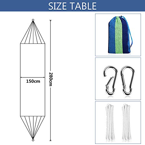★【Leicht und Hinnehmbar】280x150cm Hängematte Abseits große, 39×21.5x13cm zusammengeklappt, dessen ungeachtet 1kg, Sie umfasst 2 Karabiner und 2 Gebundenes Seil, 1 Aufbewahrungstasche, sodass Sie es vielerorts hin abwischen können. Sie können die Hängematte an einem Hängemattenstand tragen, oder sie an Bäume hängen.