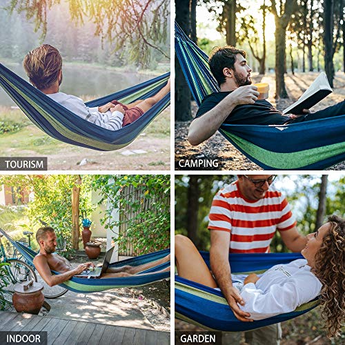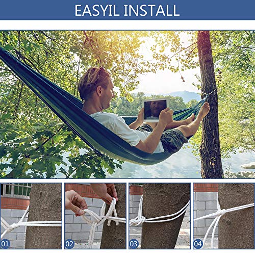 ★【Genießen sie die Schaukel】Hängematte ist leicht einzurichten. Sie müssen keine Knoten knüpfen und die Bäume nicht beschädigen. Einfach aufhängen an 2 Bäumen, können Sie vielerorts ruhen zu entspannen. Der Hängematte Sie können sich mit Ihrem Freund oder einem geliebten Menschen hinlegen. Genug Ereignis, um sich gegenseitig einen bequemen Platz zu bieten.