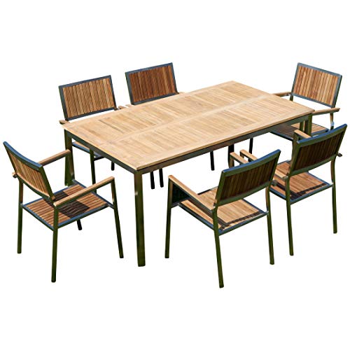– das verwendete TEAK-Holz ist die beste Holzqualität (A-Derzeit) und stammt allein sämtliche kontrollierten Plantagen- der Tisch wird zerlegt geliefert, einfach und rasch zu montieren, der Sessel ist bereits fertig montiert und stapelbar