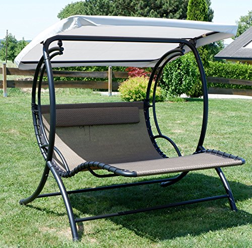 Die Hollywoodliege NAXOS schwingt bequem 2 Personen und ist somit perfekt für das ultimative Loungerlebnis.