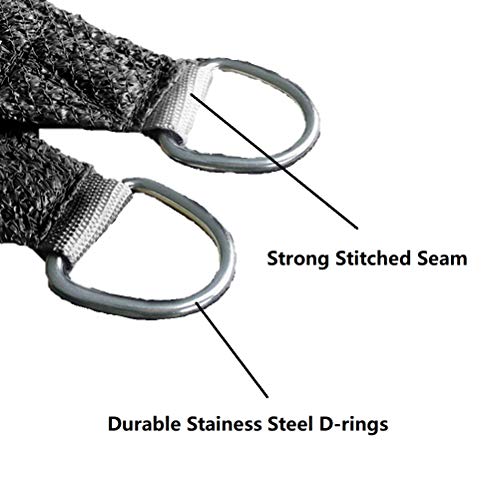 Hohe Qualität – Der Terrassenschirm besteht aus 100 % hochdichtem 185 g/m² Polyethylen-Gewebe, mit starken vernähten Nähten und langlebigen D-Ringen aus Edelstahl. Der Stoff ist atmungsaktiv und 95 % UV-Block, so dass Luft und Licht durchdringen können, um einen bequemeren Raum zu buckeln. Dieses Sonnensegel wird mit stabilen Polyethylen-Seilen geliefert