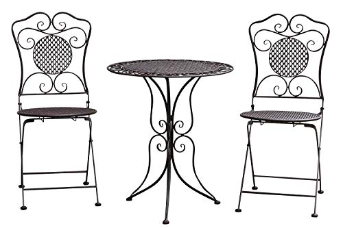 Wunderschöne Garnitur bestehend die Gesamtheit einem Tisch und 2x Stuhl, nach altem Vorbild gefertigt. Durch aufwendige Handarbeit wird der Essay traditionell bearbeitet, um ein antikes Erscheinungsbild zu erhalten. Dies hat zur Anordnung, dass eine Patina oder bekannt als Altersspuren wissentlich sind. Der Tisch hat eine Höhe von 75cm und einen Durchmesser von 60cm, das Gewicht beträgt 5kg. Ein Stuhl ist 95cm hoch, 40cm besoffen und 56cm unergründlich, das Gewicht beträgt je 5kg. Die Sitzhöhe beträgt 47cm und die Sitzfläche hat einen Durchmesser von 40cm. Die Stühle sind klappbar. Runter an den Füßen sind Kunststoffkappen sinnvoll. Dadurch kann das Bistroset bekannt als in Wohnräumen genutzt werden und der Boden wird geschont. Geliefert wird das Gartenset in zwei stabilen Kartons, alles kann mit wenigen Handgriffen aufgebaut werden. Die Dekoration dient allerdings zum Größenvergleich und ist nicht Bestandteil des Angebotes.