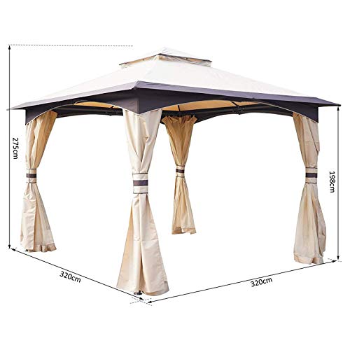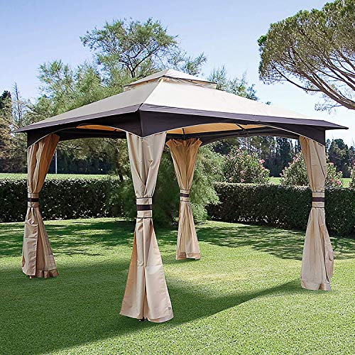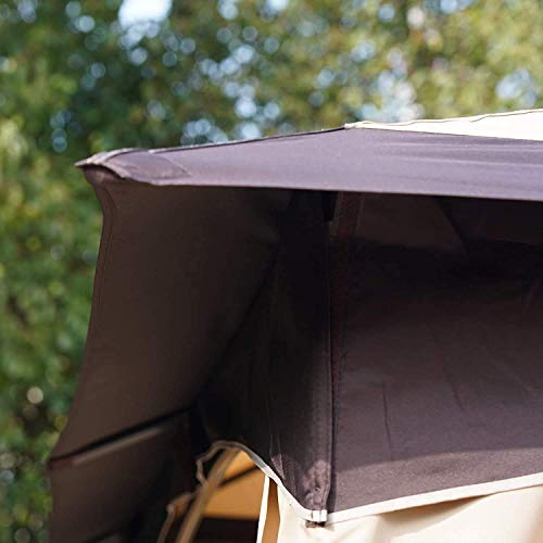 2-TIER VENTED CANOPY: Unique beige and brown contrasting design double polyester roof with PU coating,water- and UV-resistant, provides a full range of protection from light rain or sunny days with a vented roof for added heat and wind reduction.Built-in grommets throughout the fabric help ensure proper water drainage