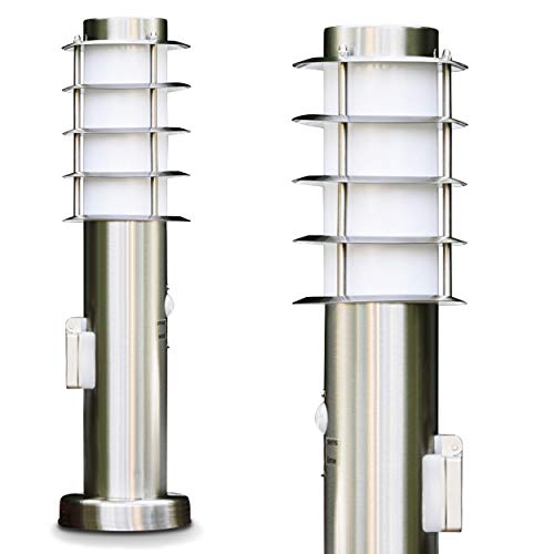 MATERIAL: Die Sockellampe ist aus massivem und hochwertigem Edelstahl gefertigt, das resistent ist gegenüber jeder Wetterlage. Der Lampenschirm besteht aus massivem Kunststoff in Weiß, der ebenfalls sehr robust ist für die Anforderungen des Außenbereiches.