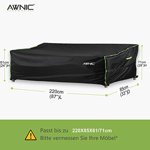 Awnic Sofa Überzug Couch Bezug Abdeckung für 3 Sitzer Wasserdicht Lounge Sofa Schutzhülle für Gartensofa Wasserdicht 420D Polyester 220x85x61/71cm