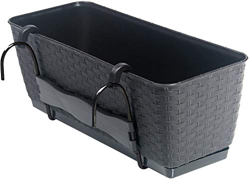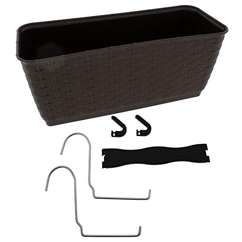 Stilvolle Blumenkästen in zeitlos schöner Rattan-Optik allesamt hochwertigem Kunststoff (Polypropylen). Mit dem durchdachten Bewässerungssystem ziehen sich die Blumen allzeit soviel Wasser, qua sie derzeit benötigen. Perfekt wie Blickfang auf Balkon, Terrasse oder vulgo für Fensterbank und Wintergarten. Das allerbest strapazierfähige Material ist UV-stetig, widerstandsfähig gegen Frost, Regen und Sonnenlicht. Sie werden aufgrund der Qualität und des Designs vielerlei Jahre Freude an diesen dekorativen Blumenkästen haben. Bei den Kästen sind jeweils zwei Halterungen allesamt Metall, ein Querstück zur Stabilsierung der Halterungen sowie zwei Halterungen allesamt Kunststoff enthalten. Material: Kunststoff (Polypropylen) Unterart 300 (30 cm) – 29,3 x 11,9 x 12,6 cm (L/B/H) – Volumen 3 Liter Unterart 400 (40 cm) – 38,6 x 15,4 x 12,2 cm (L/B/H) – Volumen 6 Liter Unterart 500 (50 cm) – 49,2 x 17,2 x 17,4 cm (L(B/H) – Volumen 12 Liter