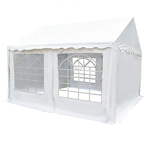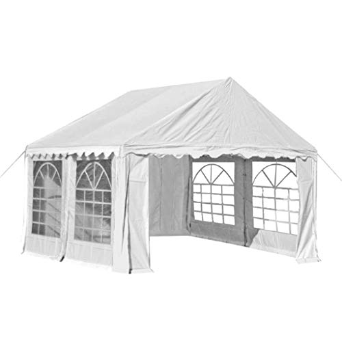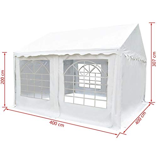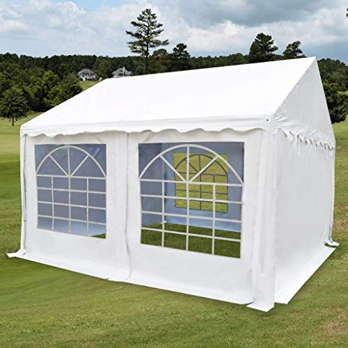 Höhe der Dachrinnenlinie: 2 m Wasserabweisende Planenmontage ist außergewöhnlich einfach: 1 Abdeckplane mit Klettverschluss, 1 Rohrrahmen, 2 Türen (verschiedene Größen), 4 Seitenteile mit 4 Fenstern (je 2 x 2 m) Spannseile, Schrauben und Heringe zur Befestigung der Plane und des Rahmens. Material: PVC: 100 %